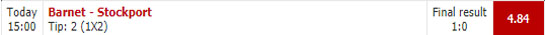 Obie te strony spowodowały spore zamieszanie w pierwszej rundzie, a Stockport wygrał w Yeovil, a Barnet pokonując Bristol Rovers w powtórce. Barnet gra w National League, ale daleko im do czołówki i naprawdę nie rozumiem dlaczego są tutaj tak faworyzowani. Trzy porażki w ostatnich pięciu meczach. Stockport 12 pozycja w National League North. Co prawda przegrali ostatnio z Blyth w lidze ale jak na pisałem wczoraj, Blyth powoli wraca do formy. Wcześniej siedem meczy bez porażki. Tutaj może być rożnie a mnie się kurs na gości bardzo podoba.
